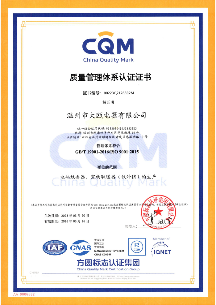 秉承“以人為本,以質(zhì)取勝”的經(jīng)營理念,三十余載櫛風(fēng)沐雨,踐行“成就客戶、價(jià)值為本、誠信務(wù)實(shí)、追求卓越”的核心價(jià)值觀。大甌公司堅(jiān)持以產(chǎn)研一體化的經(jīng)營模式與差異化的競爭戰(zhàn)略為基點(diǎn),持續(xù)推出細(xì)分市場上的多種類產(chǎn)品,豐富產(chǎn)品矩陣,滿足消費(fèi)者多樣化需求,助力新型驅(qū)蚊行業(yè)高速發(fā)展。